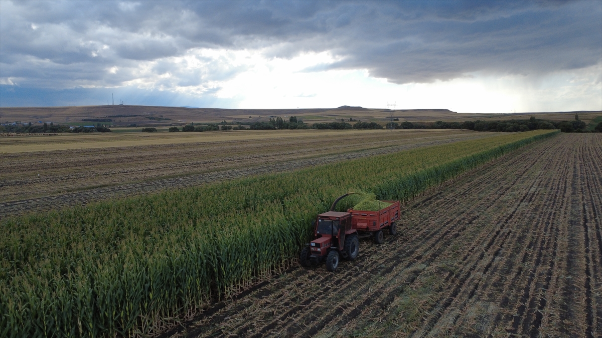 Kars'ta üreticiler yüksek verim elde ettiği silajlık mısırı hasat ediyor