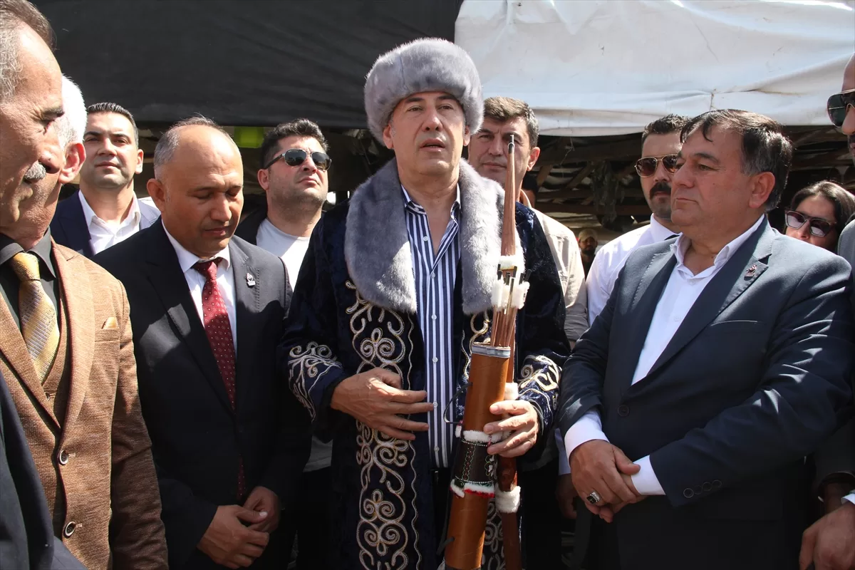 Partililer tarafından hediye edilen kaftanı giyen Oğan'a yay ve ok da verildi.