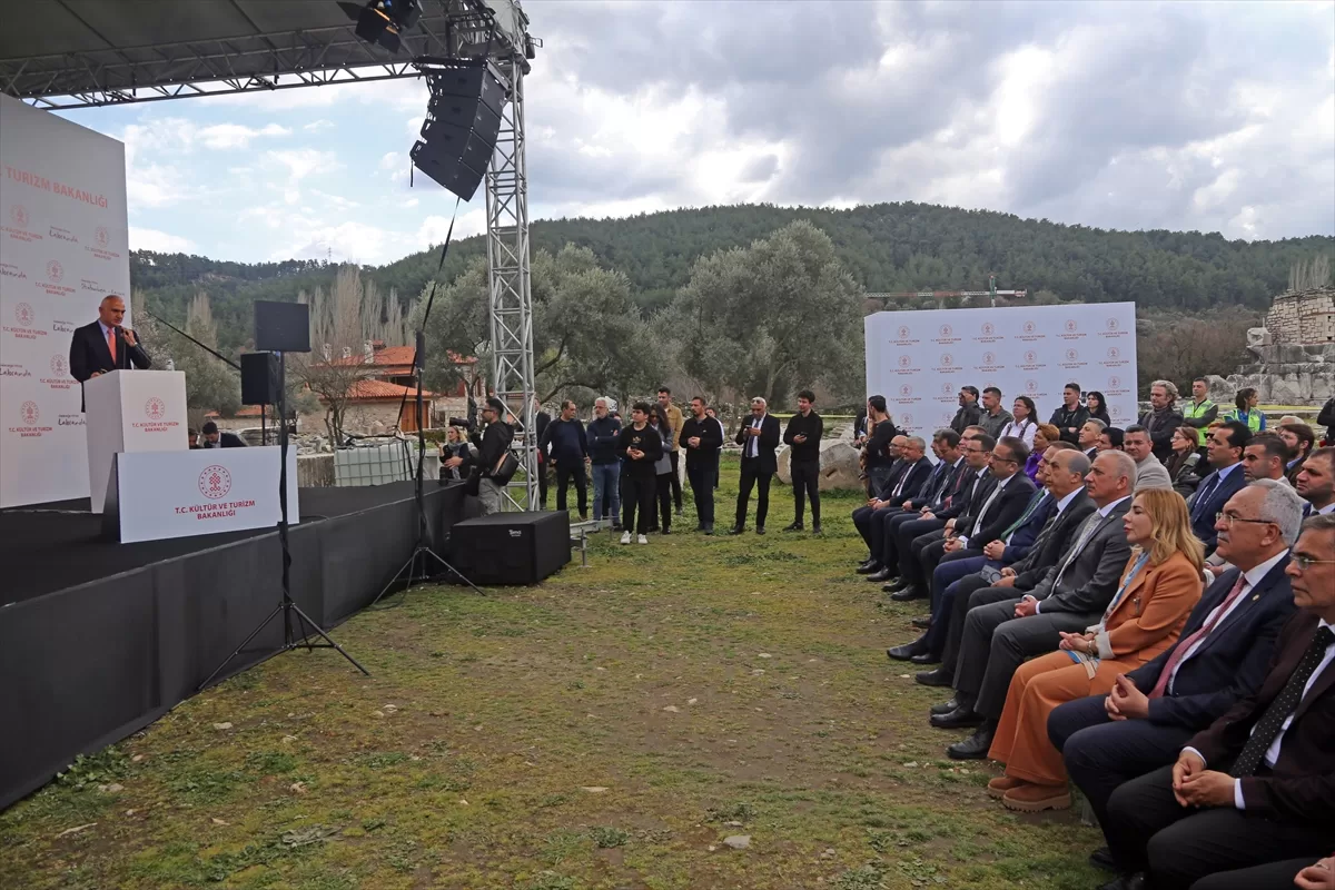 Bakan Ersoy, Muğla'nın Yatağan ilçesindeki Stratonikeia Antik Kenti'nde düzenlenen programda, "Geleceğe Miras Stratonikeia-Lagina-Labranda" projesini tanıttı.