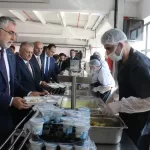 Yemekhanede tabldot alıp sıraya giren Işıkhan, işçilerle sohbet etti ve hatıra fotoğrafı çektirdi.