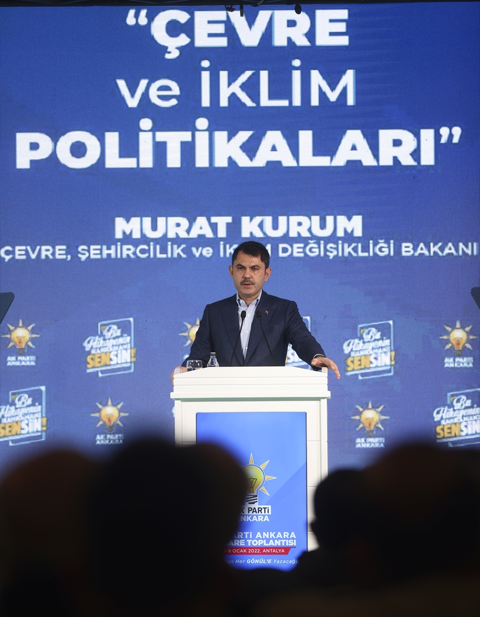 Kurum, Antalya'nın Serik ilçesi Belek Turizm Merkezi'ndeki bir otelde gerçekleştirilen AK Parti Ankara İl Başkanlığı Kampı'nda çevre ve iklim politikaları hakkında sunum yaptı.