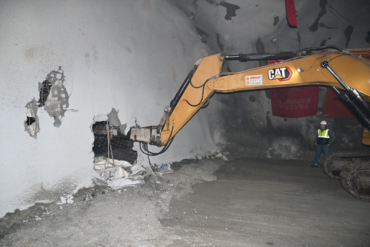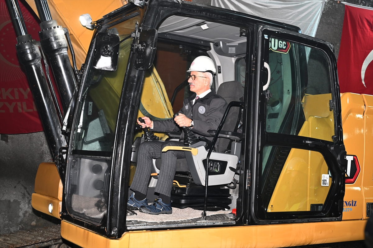 Bakan Uraloğlu, konuşmasının ardından kullandığı iş makinesiyle kazı yapıp ilk ışığın tünele girmesini sağladı.
