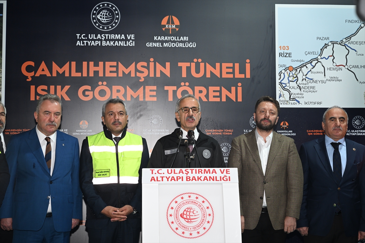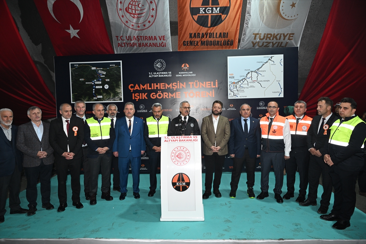 Uraloğlu, 960 metrelik tünelde düzenlenen törende, tünelin, geçen yıl Cumhurbaşkanı Recep Tayyip Erdoğan ile temelini attıkları Ardeşen-Çamlıhemşin-Ayder İl Yolu kapsamında inşa edildiğini söyledi.