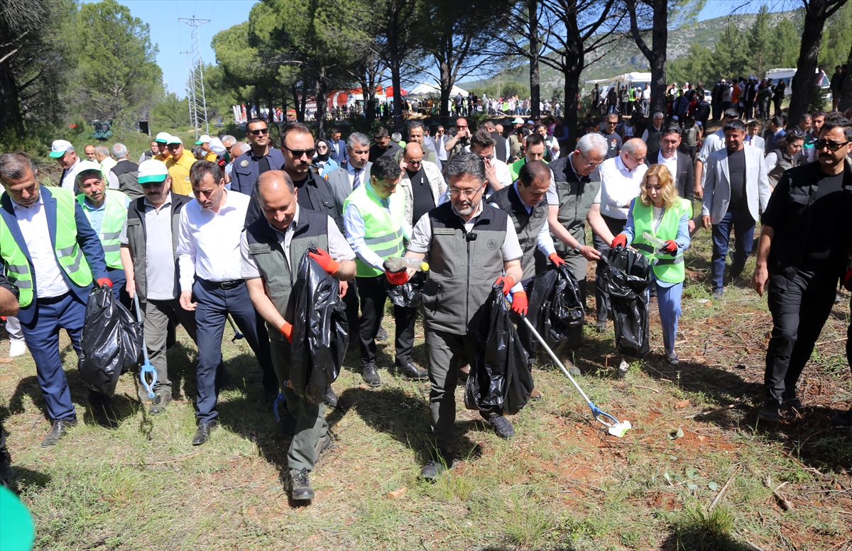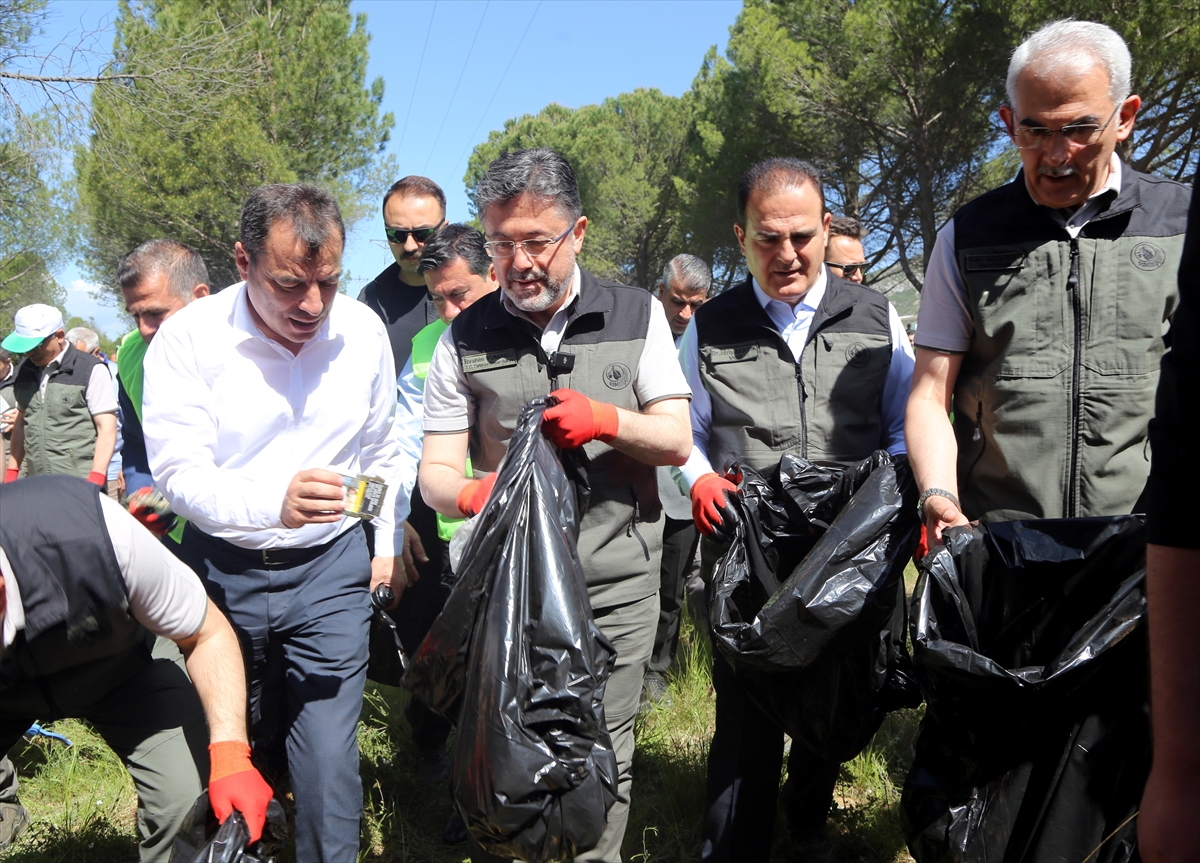 Bakan Yumaklı ve beraberindekiler daha sonra ormanlık alana girerek burada kara yolundan ormana atılan çöpleri temizledi.