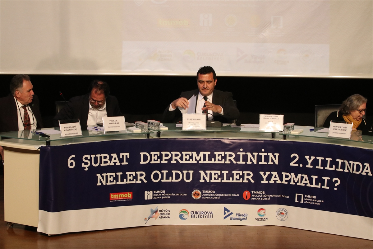 Çukurova Belediyesi Orhan Kemal Kültür Merkezi'nde "6 Şubat Depremlerinin 2'nci Yılında Neler Oldu, Neler Yapılmalı" başlıklı panel düzenlendi.