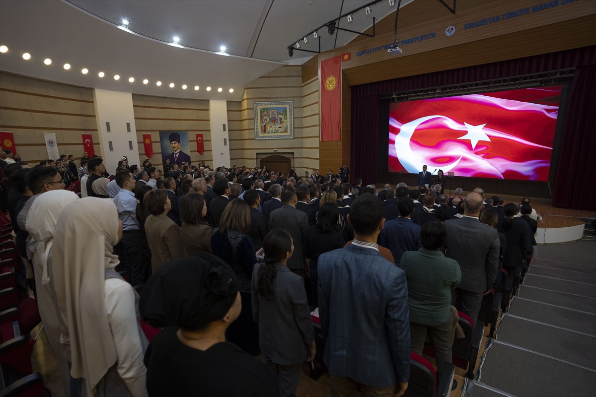 "Türkiye olarak Kırgız gençlerinin daha aydınlık bir gelecek kurmalarına destek olmak amacıyla eğitim öğretim sahasında çalışmalarımızı sürdürüyoruz. Bu çerçevede Kırgızistan'ın bağımsızlığının hemen ardından 1992 yılında imzaladığımız Eğitim Anlaşması kapsamında ortak okulumuz Türk Kırgız Anadolu Lisesi ve Anadolu Kız Meslek Lisesini eğitime açtık. 1995 yılında ise Manas Üniversitemizin temellerini attık. 2022 yılında Türkiye Maarif Vakfı okulumuzun açılması ile Kırgızistan'da eğitime verdiğimiz desteği bir kez daha teyit ettik. Gelinen aşamada ortak liselerimizde 400, Bişkek Türk okulumuzda 1200, TÖMER Türkçe kurslarımızda 3 bin 100 öğrencimiz var. Kısa süre önce açılmasına rağmen Türkiye Maarif okulumuzda 1500 öğrenciye ulaştık. Manas Üniversitesinde ise yaklaşık 7 bin genç kardeşimiz yükseköğrenim görüyor. Yani farklı seviyelerde toplamda 13 bini aşkın öğrenciye doğrudan destek sağlıyoruz."