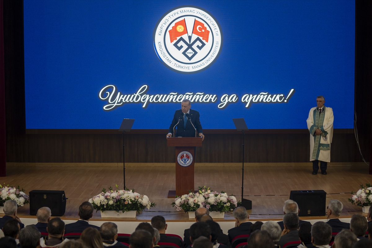 Erdoğan, Türkiye Cumhurbaşkanı olarak sadece Kırgızistan'ın değil, Türk dünyasının en gözde üniversitelerinden biri olan Manas Üniversitesi'nden, gelecek dönemde çok daha büyük projeler, daha nitelikli bilimsel çalışmalar, çok daha önemli başarılar beklediğini dile getirdi.
