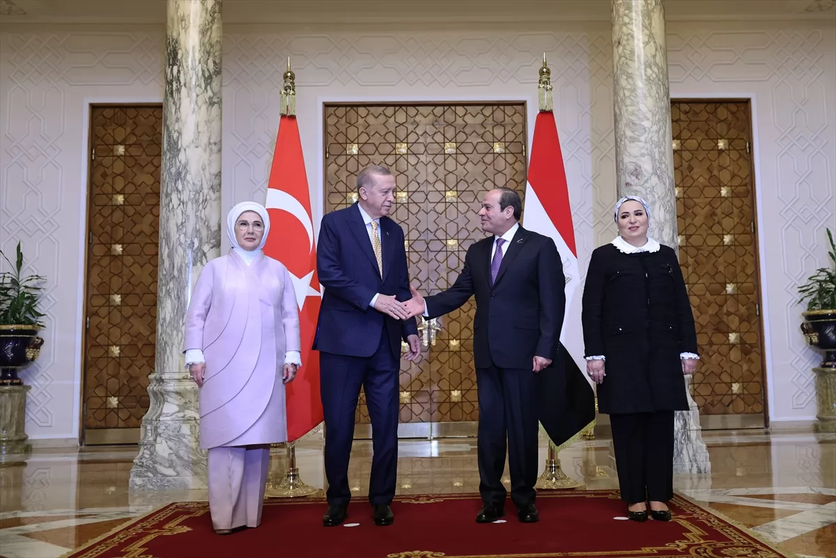 KAHİRE (AA) – Cumhurbaşkanı Recep Tayyip Erdoğan, resmi temaslarda bulunmak üzere geldiği Mısır'ın başkenti Kahire'de, Mısır Cumhurbaşkanı Abdulfettah es-Sisi tarafından resmi törenle karşılandı.
