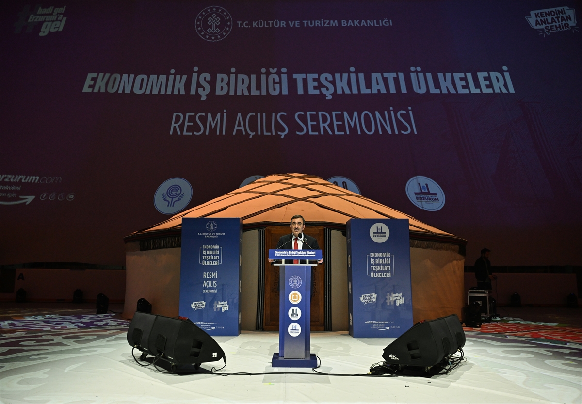 Yılmaz, Erzurum'daki Buz Hokeyi Salonu'nda düzenlenen Ekonomik İşbirliği Teşkilatı (EİT) 2025 Erzurum Turizm Başkenti Resmi Açılış Töreni'nde, Erzurum'da, misafirleri ağırlamaktan büyük bir bahtiyarlık duyduğunu söyledi.