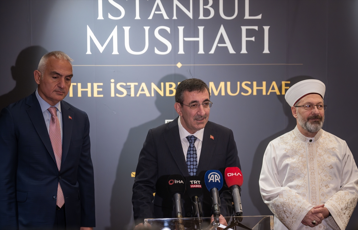 ANKARA (AA) – Cumhurbaşkanı Yardımcısı Cevdet Yılmaz, "Farklı milletlerden Müslümanların, Kuran'a duydukları saygıyı gösteren, birbirinden güzel mushaflar, İstanbul Mushafı'nda bir araya getirilmiştir. Bu çalışma, İslam dünyasının ortak değerler etrafında birleşeceği günlerin de umudunu taşımaktadır." dedi.