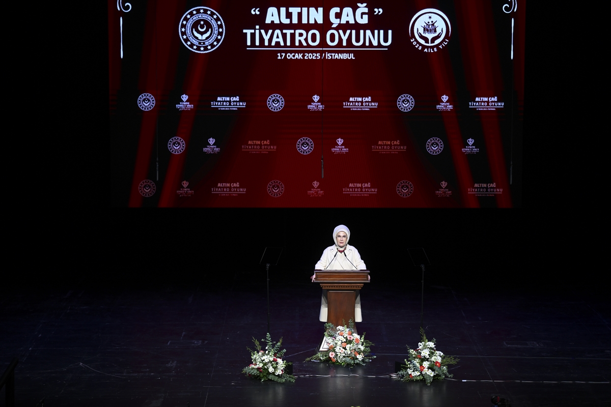 Emine Erdoğan, Aile ve Sosyal Hizmetler Bakanlığı işbirliğinde Türkiye Diyanet Vakfı İstanbul Gönüllü Koordinatörlüğü tarafından yürütülen "Hayata Köprü Sanat Projesi" kapsamında kadrosu devlet himayesindeki çocuklardan oluşan "Altın Çağ" adlı tiyatro oyununu izledi.