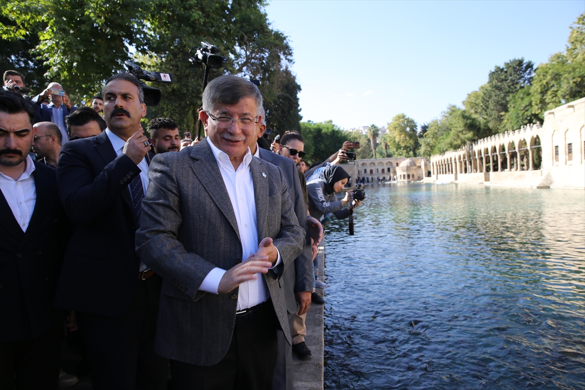 Davutoğlu, çeşitli temaslarda bulunmak üzere geldiği Şanlıurfa'da, Cuma namazını tarihi Balıklıgöl yerleşkesindeki Dergah Camisi'nde kıldı. Namaz sonrası yerleşkedeki vatandaşlarla sohbet eden Davutoğlu, balıklara yem attı.
