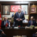 Bir dizi program için Kahramanmaraş'a gelen Dervişoğlu, Çağlayancerit Belediyesini ziyaret etti, Belediye Başkanı Yemliha Göktaş'tan çalışmalar hakkında bilgi aldı.