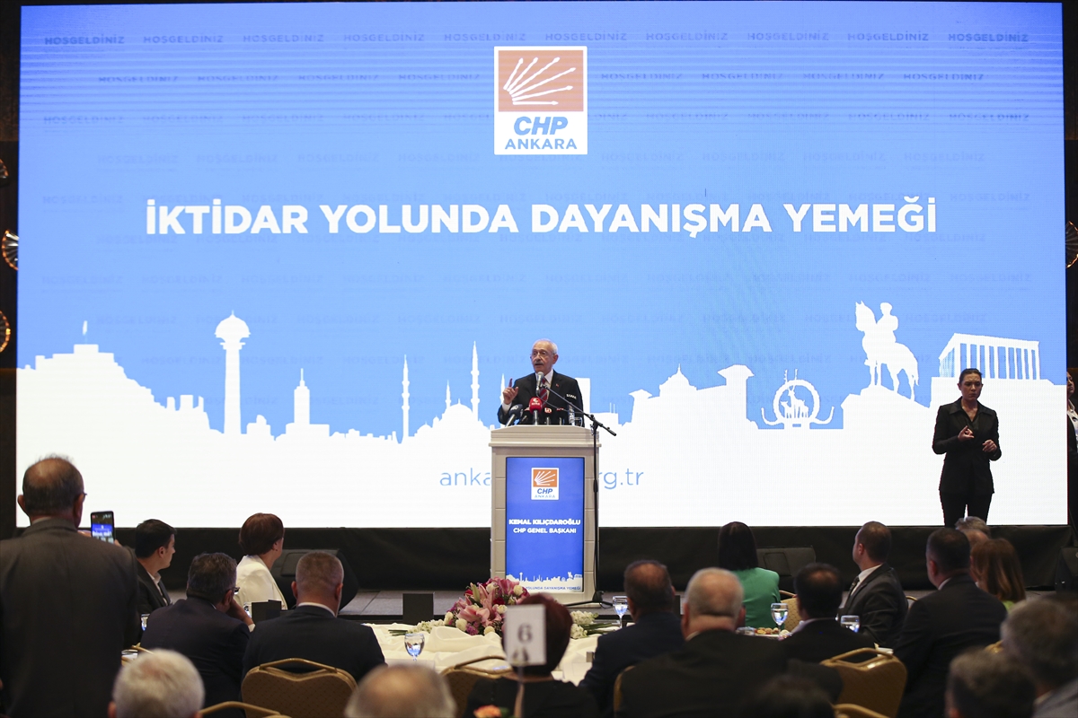 Kılıçdaroğlu, CHP Ankara İl Başkanlığı tarafından bir otelde düzenlenen dayanışma yemeğine katıldı.