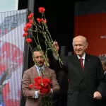 Konuşmasının ardından katılımcılara karanfil dağıtan Bahçeli, MHP Aydın milletvekili adaylarıyla meydandakileri selamladı.