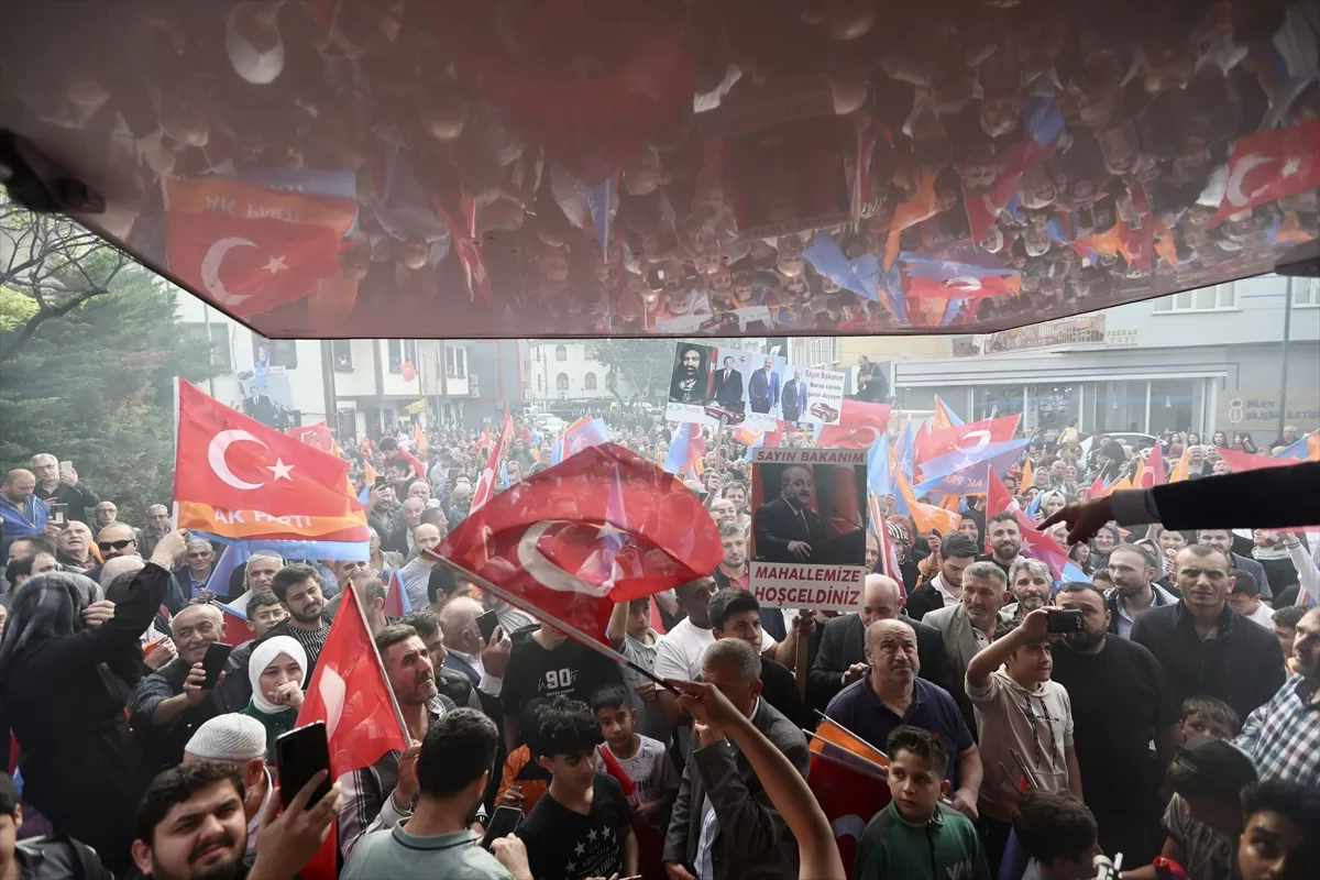 Bursa'da seçim çalışmaları kapsamında "Anadolu kırmızısı" rengi Togg ile Osmangazi ilçesi Küçükbalıklı Mahallesi'ne gelen Varank, vatandaşların yoğun ilgisiyle karşılandı.