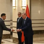 Cumhurbaşkanlığı Külliyesi'ndeki kabulde, Rencelj, Erdoğan'a güven mektubu sundu.