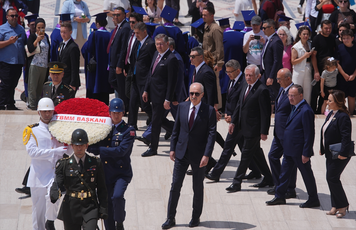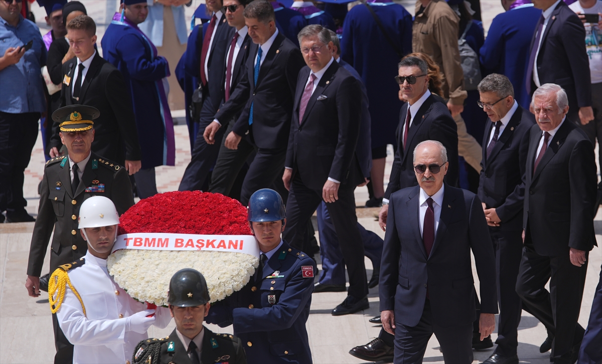 Kurtulmuş'un, "TBMM Başkanı" yazılı kırmızı beyaz karanfillerden oluşan çelengi Atatürk'ün mozolesine bırakmasının ardından saygı duruşunda bulunuldu.
