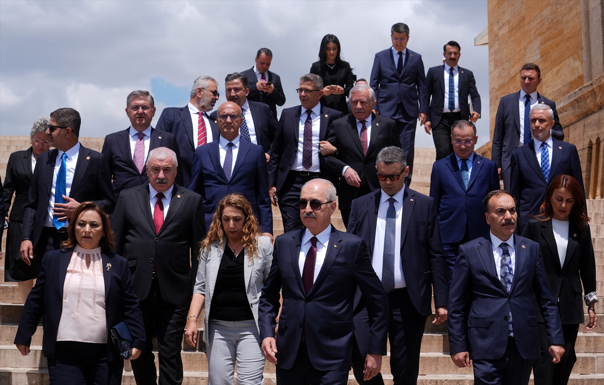 Numan Kurtulmuş ile 28. Yasama Dönemi İkinci Devre Başkanlık Divanı üyeleri, mozoleye çıkan merdivenlerde hatıra fotoğrafı çektirdi.
