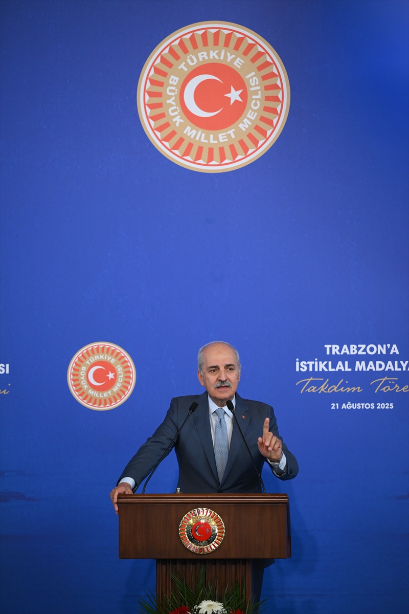 TBMM Başkanı Kurtulmuş, programda emeği geçenlere teşekkür ederek, İstiklal Madalyası'nın Trabzon'a hayırlı ve uğurlu olmasını diledi.