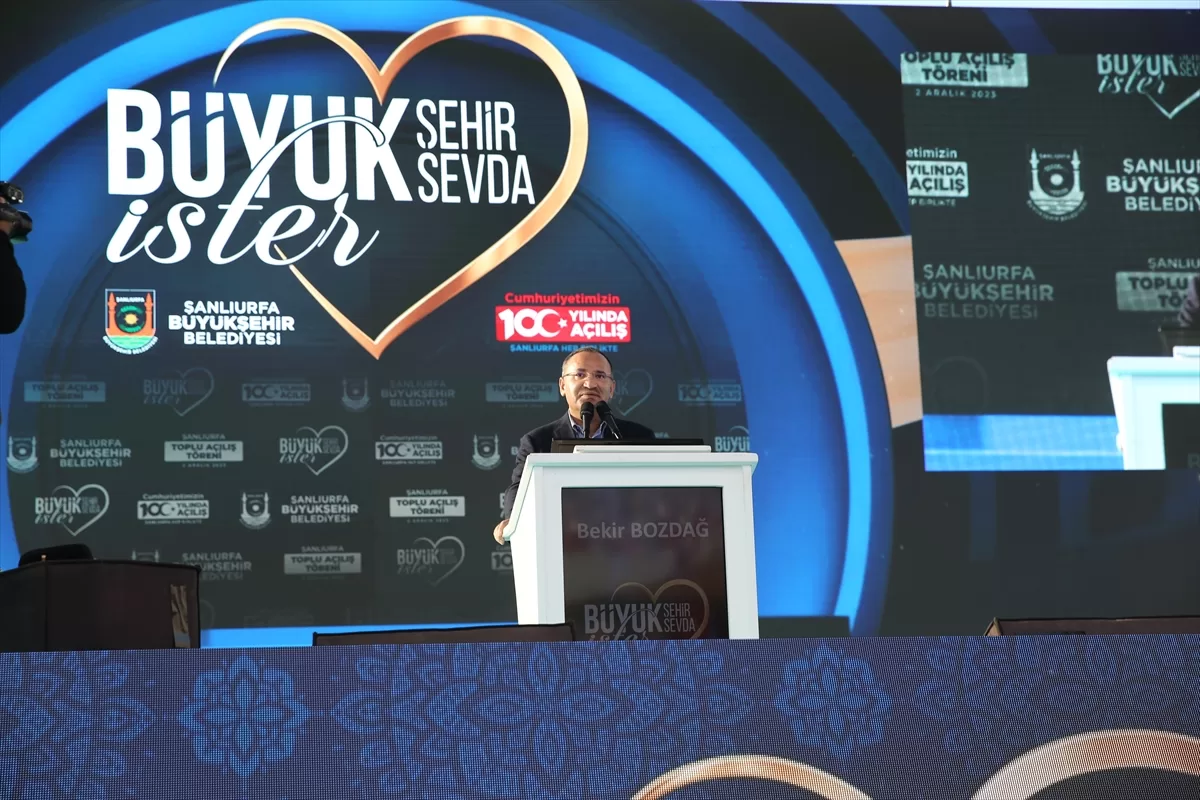 Bozdağ, Şanlıurfa Büyükşehir Belediyesince düzenlenen "Cumhuriyet'in 100. Yılında 100 Projenin Açılışı" programında, böylesine hayırlı ve yararlı eserlerin açılışında bulunmaktan memnuniyet duyduğunu belirterek, Şanlıurfa'nın hizmetin en iyisine layık olduğunu ifade etti.