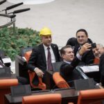 DEM Parti'nin grup önerisi adına söz alan CHP Ankara Milletvekili Umut Akdoğan, kürsüye elinde baretle çıktı.
