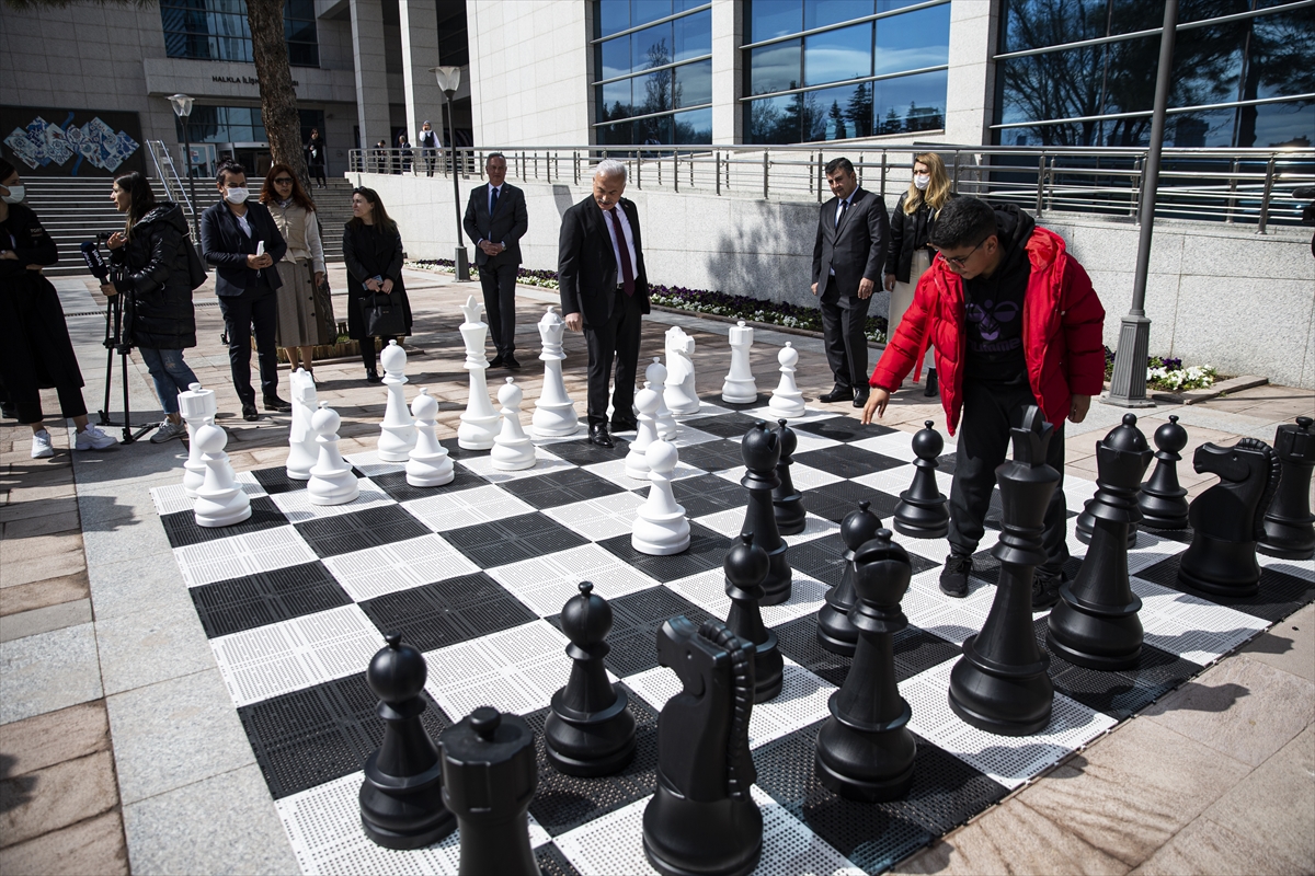 TBMM (AA) – 23 Nisan Çocuk ve Gençlik Buluşmaları etkinlikleri kapsamında Meclis Halkla İlişkiler Binası girişine bahçe satranç takımı kuruldu.