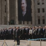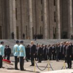 TBMM Başkanı Numan Kurtulmuş'un anıta çelenk bırakmasının ardından bando eşliğinde saygı duruşunda bulunularak, İstiklal Marşı okundu.