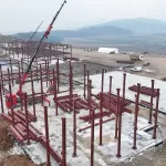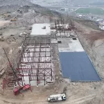 Çok sayıda personelin çalıştığı 33 dönüm arazi üzerine çelik yapı formunda yatay mimariye uygun olarak kurulan hastane inşaatının yol, temel kazı çalışmaları tamamlanırken yapının birinci katının çelik montajı yapılıyor.