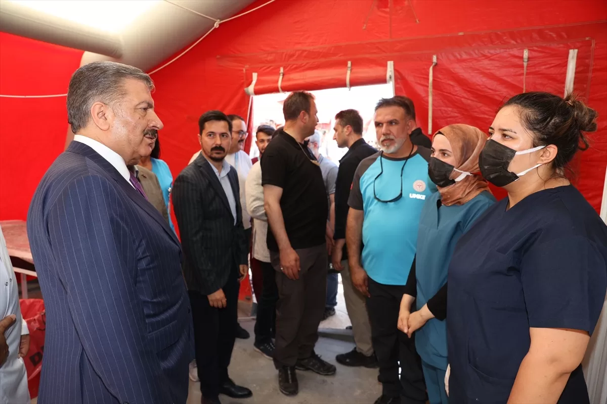 Daha sonra Altınözü Devlet Hastanesi’nin bahçesinde kurulu olan sahra hastanesini ziyaret eden Bakan Koca, hastalarla bir araya geldi.
