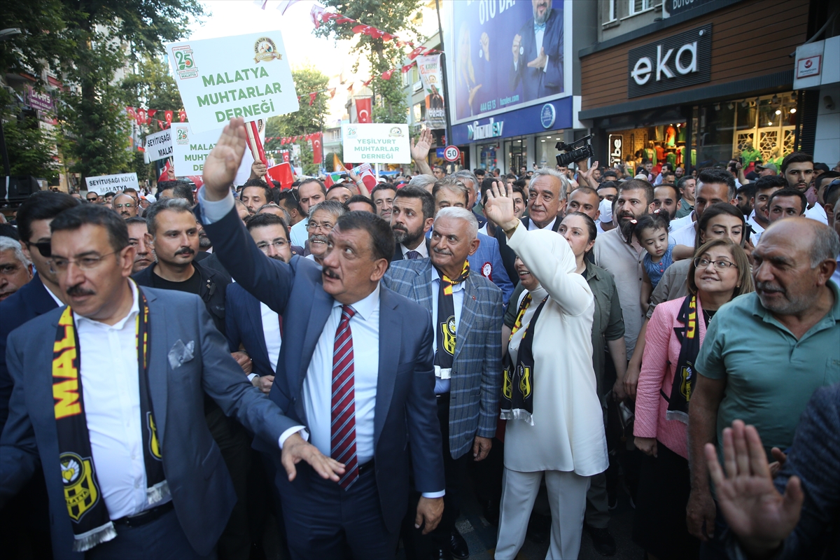 Malatya Valiliği önünde AK Parti Genel Başkanvekili Binali Yıldırım'ın da katıldığı kortej yürüyüşü renkli görüntülere sahne oldu.