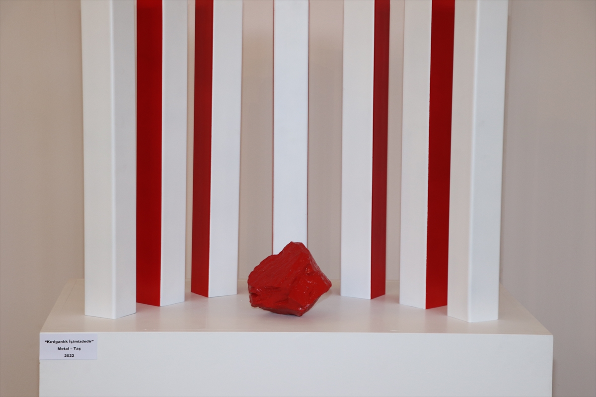 Ağırlıkla mavi ve kırmızı renklere boyanan taşlarla yapılan eserlerin yer aldığı sergi, pazar gününe kadar ziyaret edilebilecek.