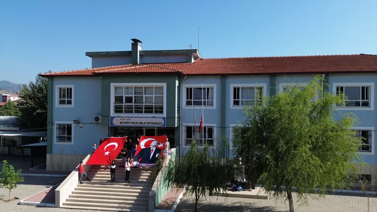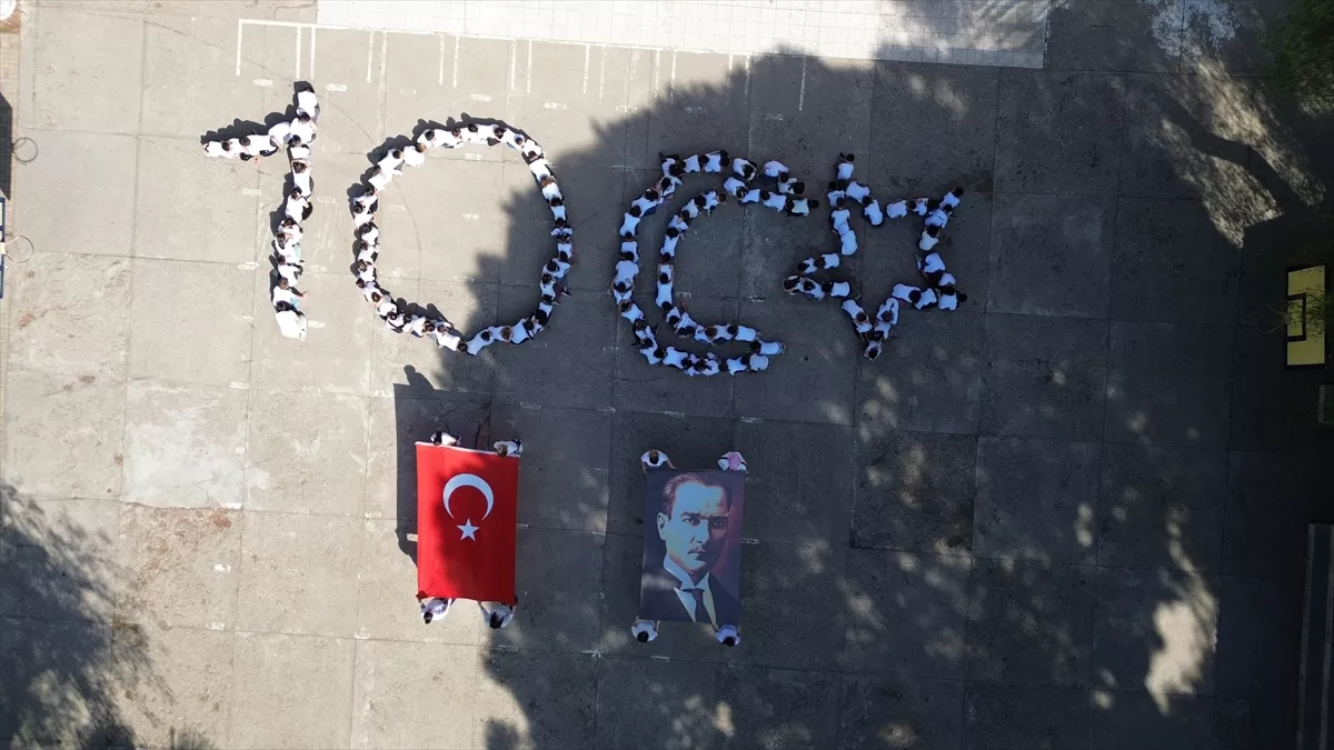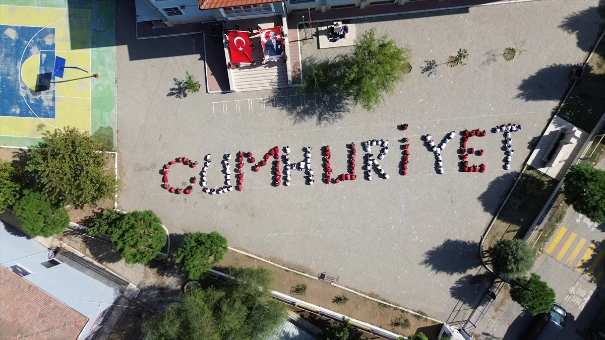 AYDIN (AA) – Aydın'ın Köşk ilçesinde ilk ve ortaokul öğrencileri, Cumhuriyet'in 100. yıl dönümü etkinlikleri kapsamında okul bahçesinde çeşitli koreografiler oluşturdu.