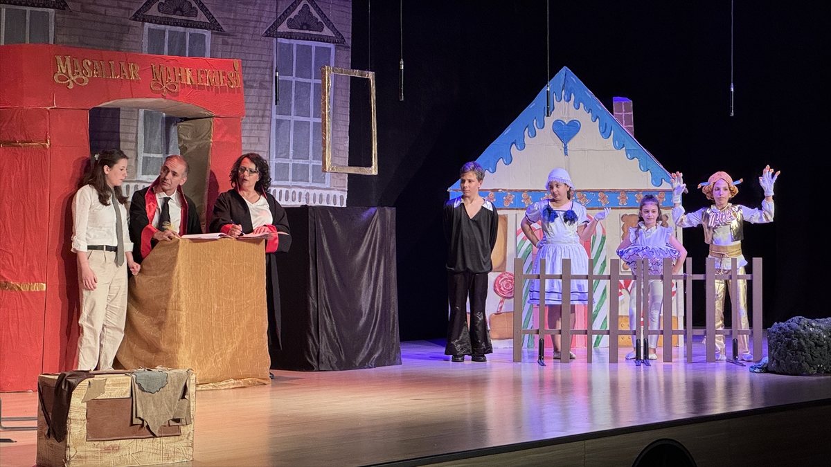 İlçedeki bir tiyatro okulu tarafından sergilenen tiyatrocu Duygu Akşen'in yazıp yönettiği "Masallar Mahkemesi" adlı tiyatro oyunu, özel bir okulun salonunda sahnelendi.