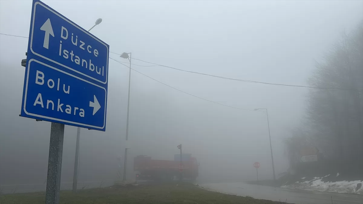 BOLU (AA) – D-100 kara yolunun Bolu Dağı kesiminde sağanak ve sis, görüş mesafesinin azalmasına neden oldu.