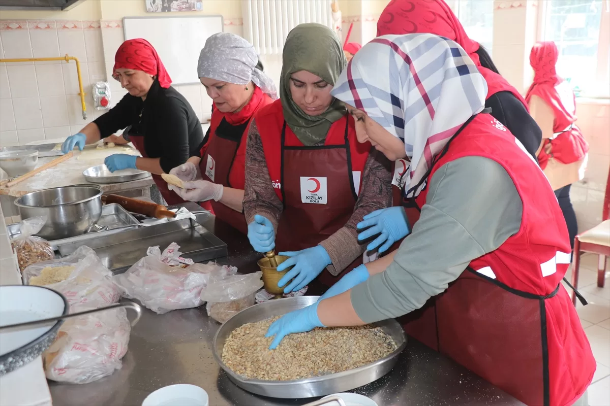 BOLU (AA) – Kahramanmaraş merkezli 6 Şubat'taki depremlerden etkilenen illerden Bolu gelen depremzede kadınlar, yöresel bayram tatlısı hazırladı.