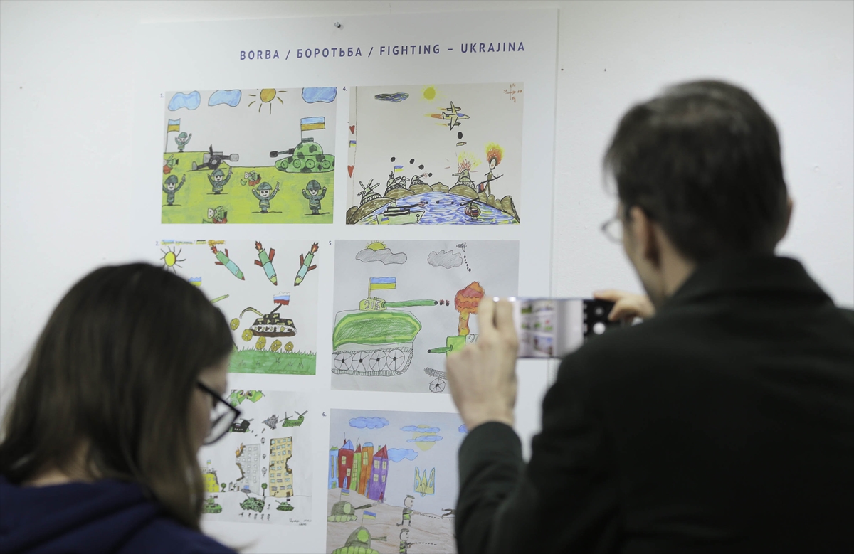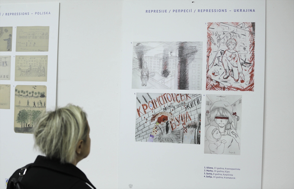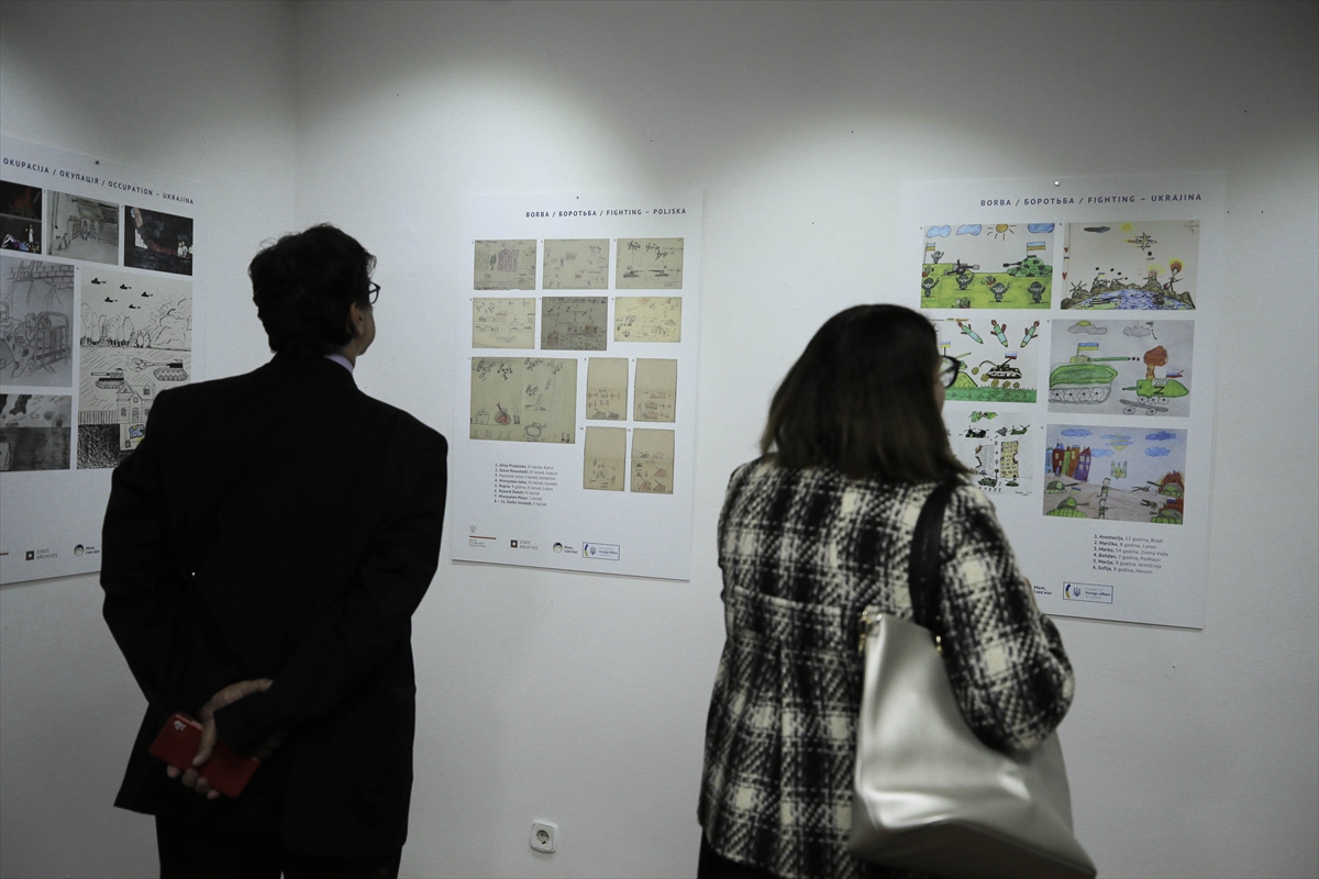 Saraybosna Edebiyat ve Tiyatro Sanatları Müzesi'nde açılan sergide, İkinci Dünya Savaşı'nda Polonyalı ve günümüzde Ukraynalı çocukların resimlerine yer verildi.