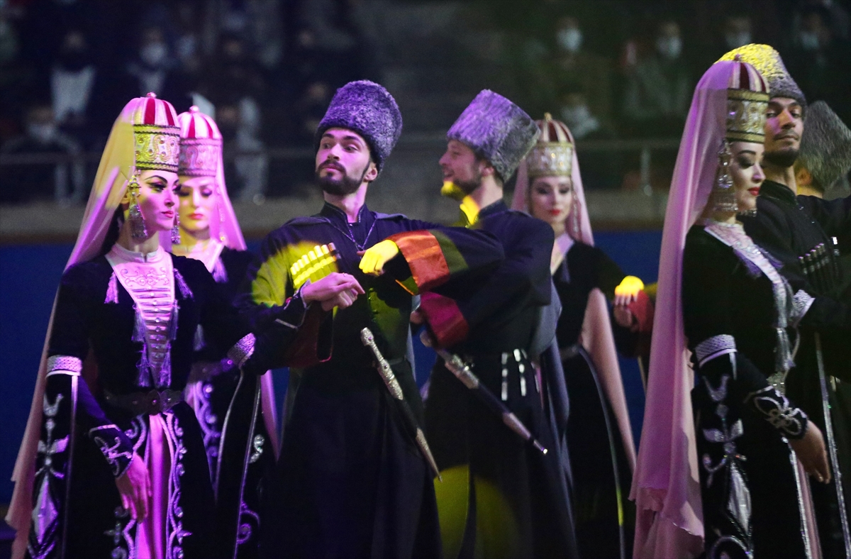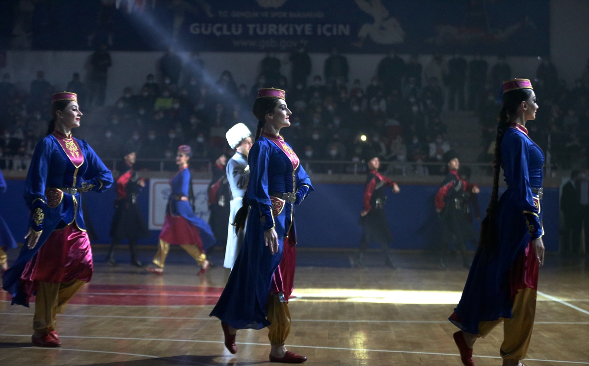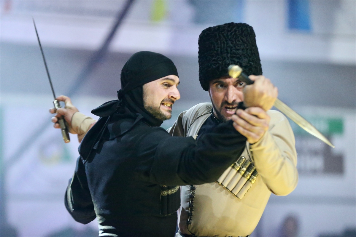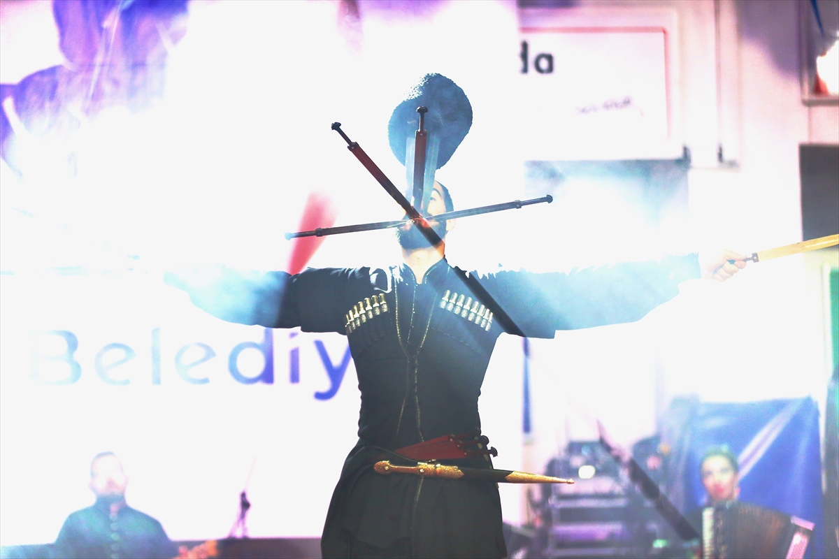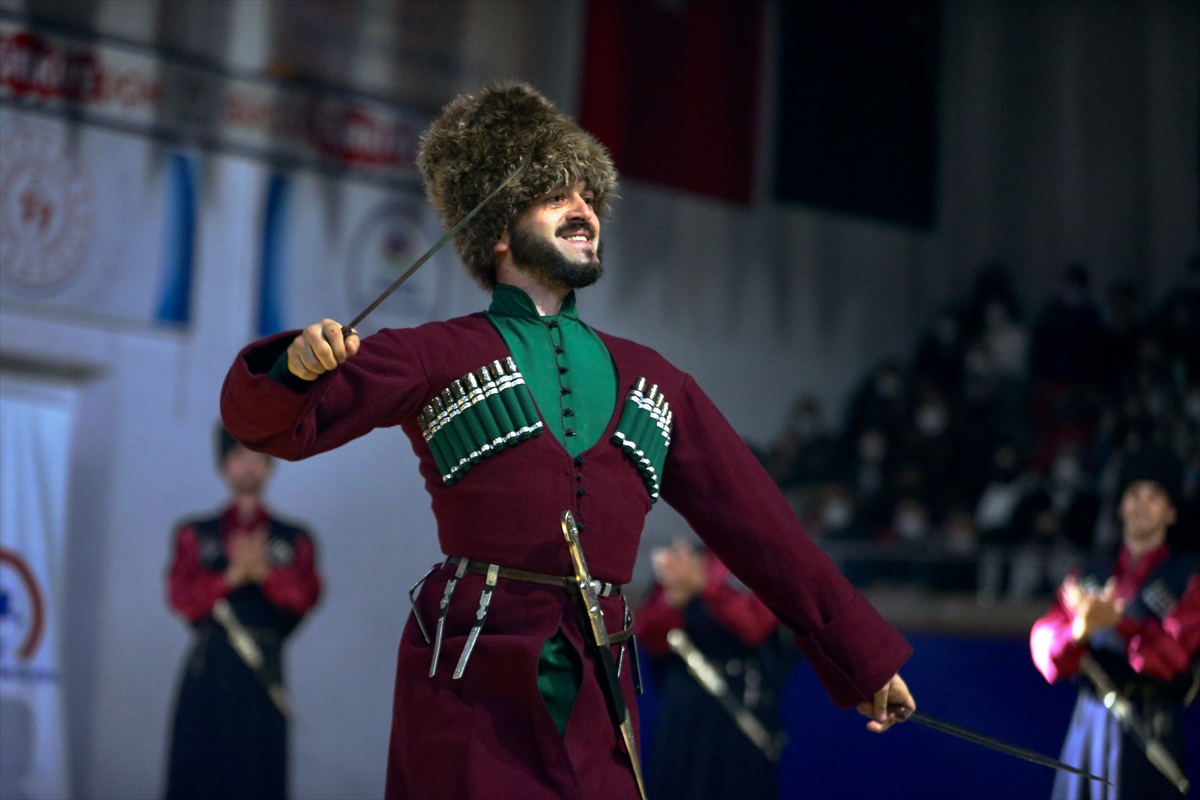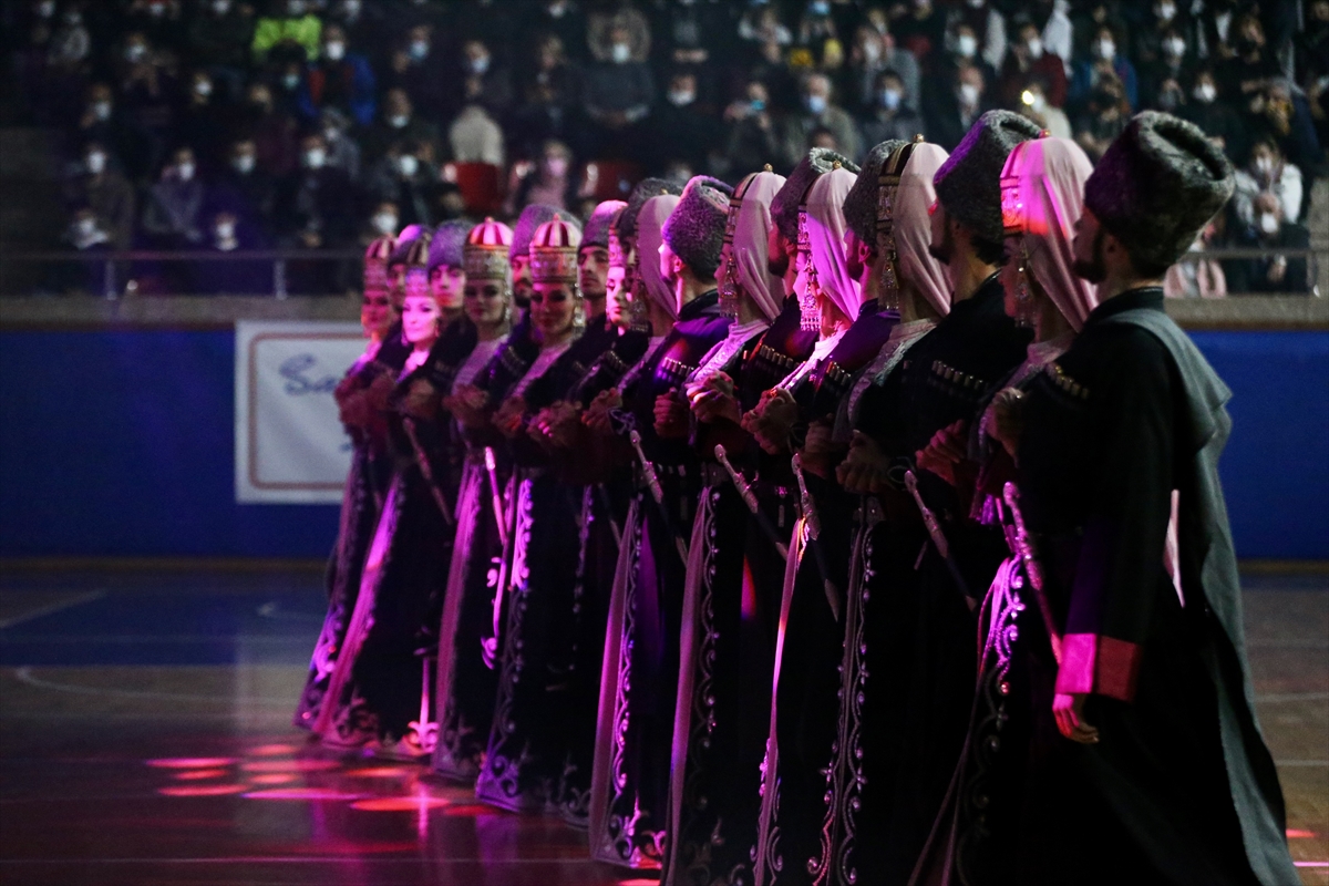 Koreografisi kadar kıyafetleriyle de dikkati çeken 55 kişilik grup, savaşçı gibi giyinen erkeklerin kılıçları ve ritmik hareketlerine kadınların yöresel elbiseleriyle eşlik etmesini sanatseverler ilgiyle izledi.