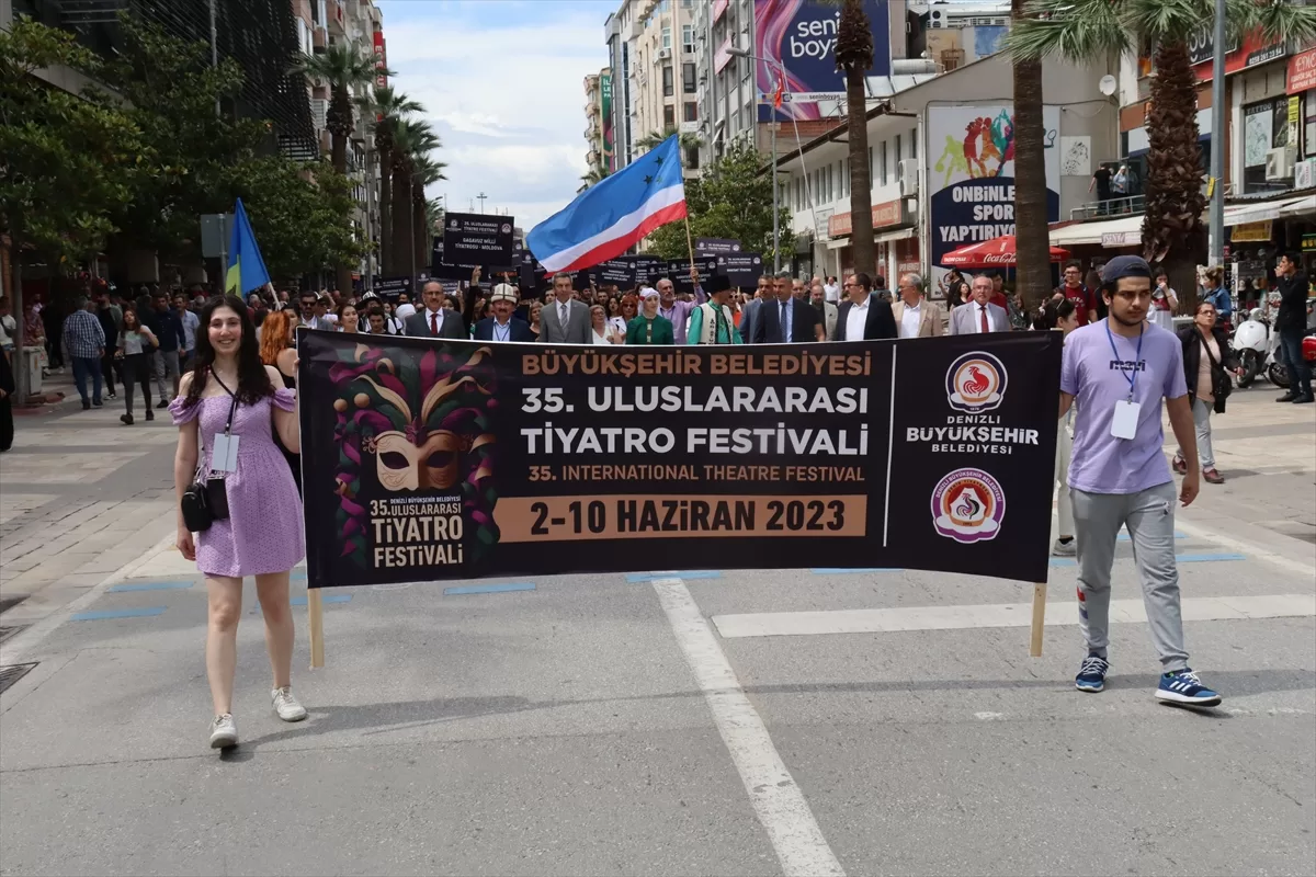 DENİZLİ (AA) – Denizli Büyükşehir Belediyesince düzenlenen 35. Uluslararası Tiyatro Festivali kapsamında kortej yürüyüşü gerçekleştirildi.