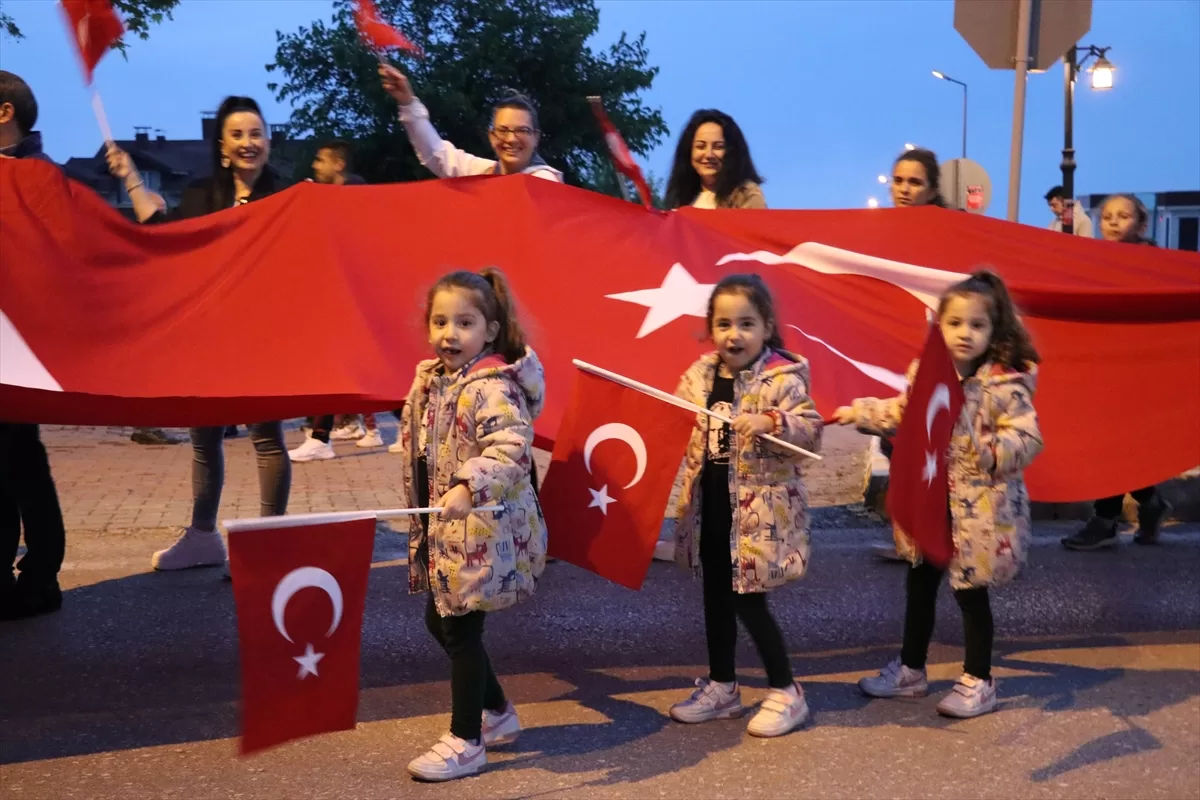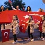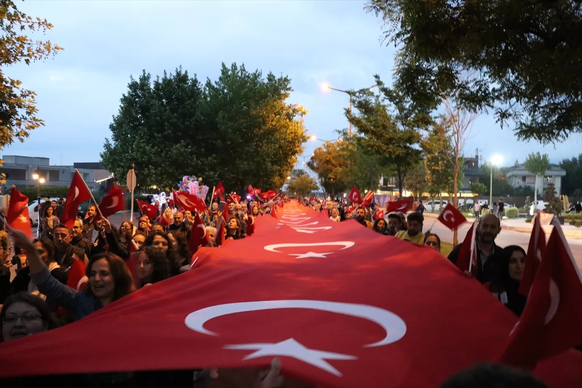 Program sırasında 200 metrelik Türk bayrağı açıldı, İzmir Marşı eşliğinde yürüyüş gerçekleştirildi.