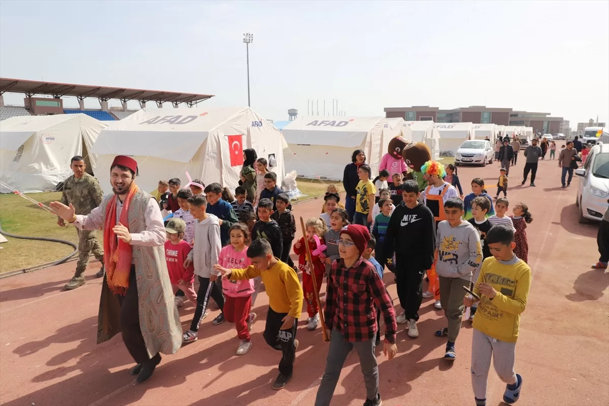ORDU (AA) – Kahramanmaraş merkezli 6 Şubat'ta meydana gelen depremlerden etkilenen Adıyaman'da, Ordu Büyükşehir Belediyesi Karadeniz Tiyatrosu (OBBKT) oyuncuları çocuklara moral vermeye çalışıyor.
