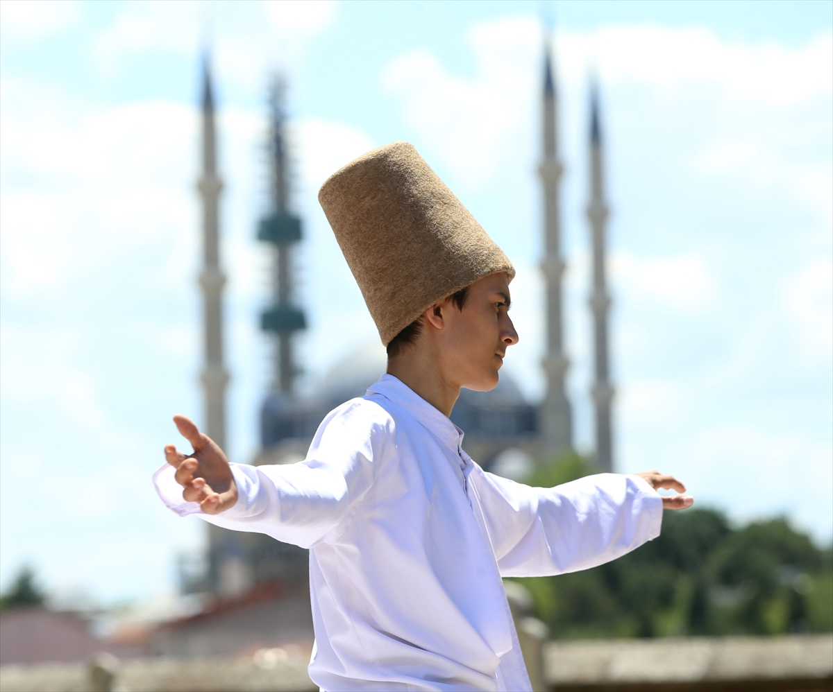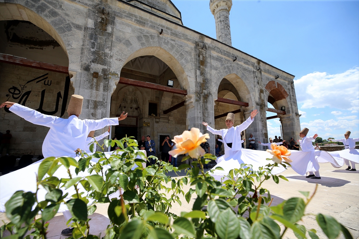 EDİRNE (AA) – Edirne'de lise öğrencilerinden oluşan Edirne Valiliği Semazen Grubu, Muradiye Camisi avlusunda sema gösterisinde bulundu.