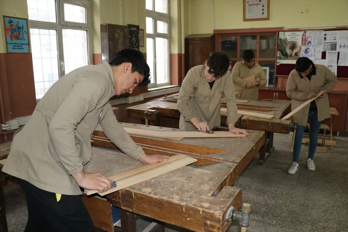 Okulun mobilya bölümünde öğretmen ve öğrenciler, çocuklara depremi unutturmak amacıyla ahşap oyuncak üretimi yapıyor. Öğrenciler, derslerden arta kalan vakitlerinde öğretmenlerinin gözetiminde ürettikleri oyuncakları boyayıp depremzede çocuklara gönderecek.