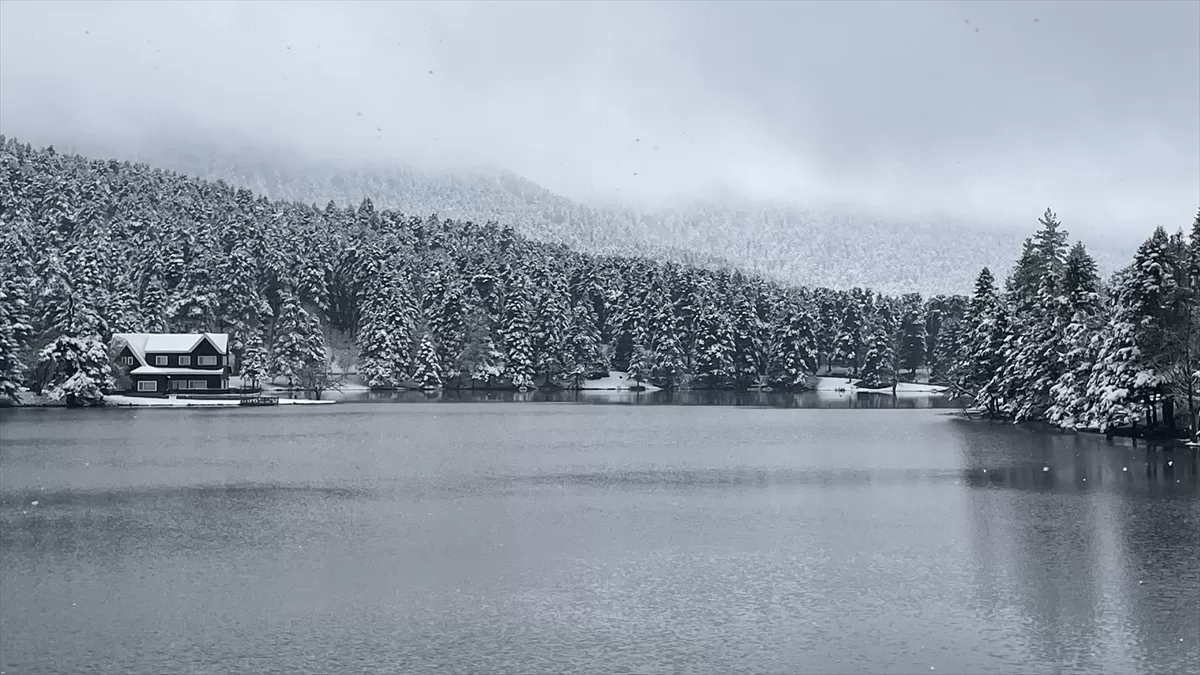 BOLU (AA) – Bolu'nun doğal güzellikleriyle ünlü Gölcük Tabiat Parkı'nda kar yağışı etkili oldu.