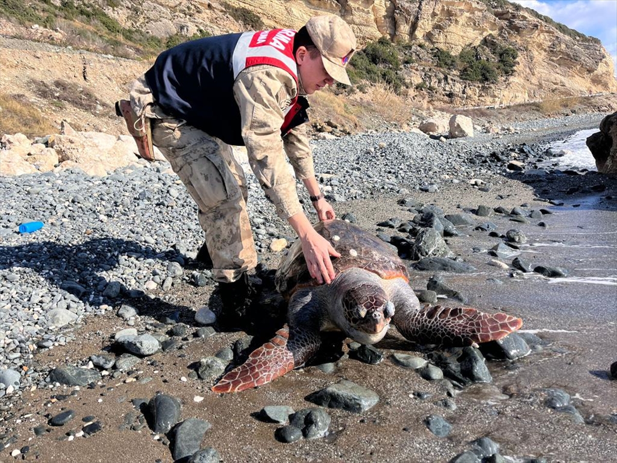 Bölgeye gelen jandarma ve Doğa Koruma ve Milli Parklar Müdürlüğü ekipleri, caretta caretta cinsi deniz kaplumbağasının kabuğundan yaralı olduğunu belirledi.