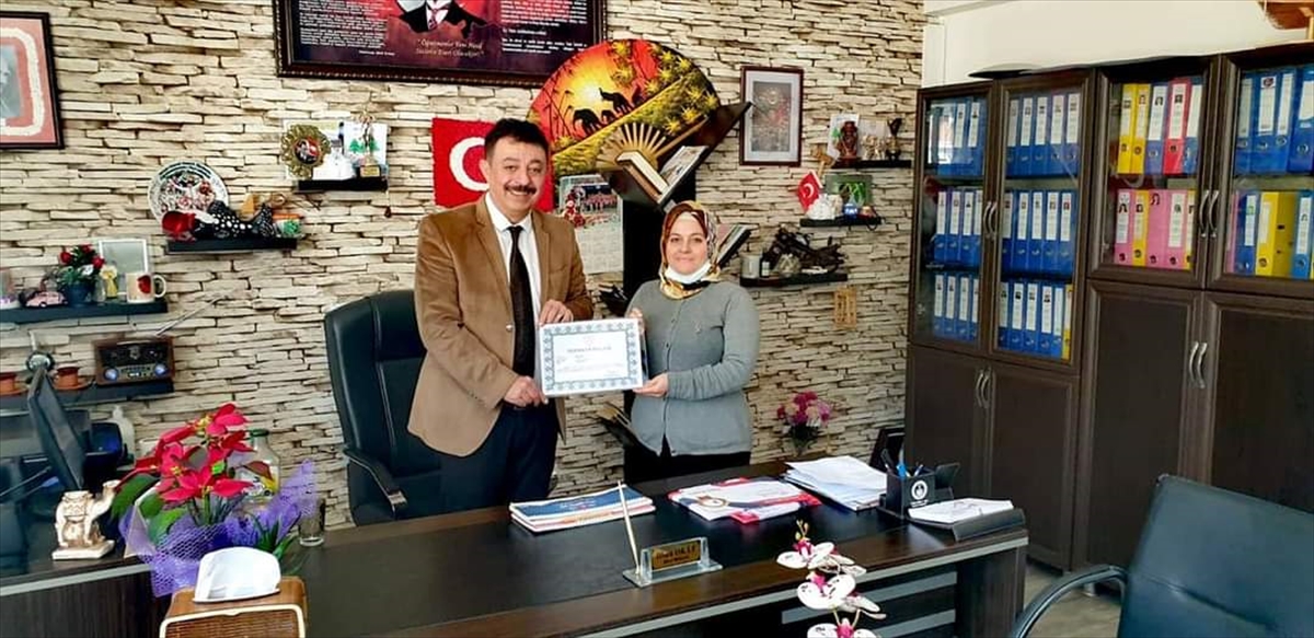 Sınıf öğretmeni Şahin'e de İlçe Milli Eğitim Müdürlüğünce teşekkür belgesi verildi.