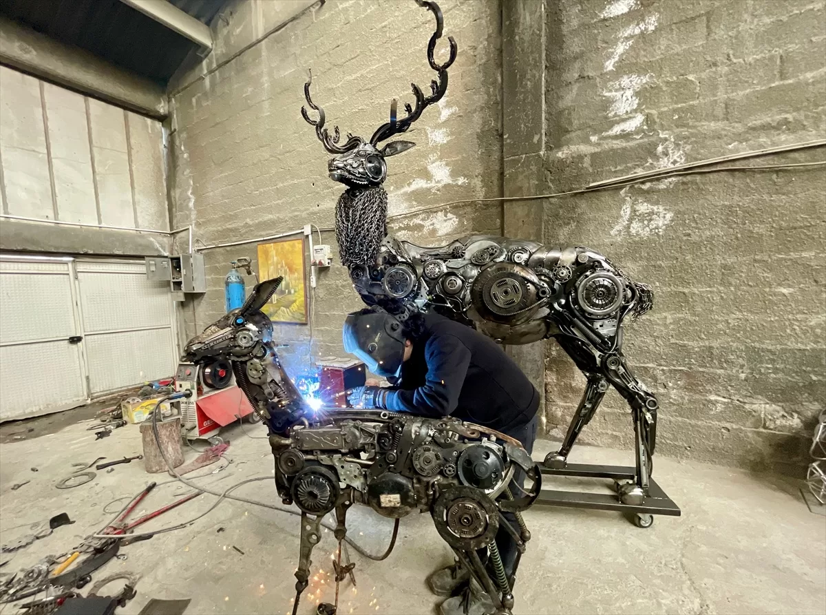 ESKİŞEHİR (AA) – DENİZ AÇIK – Metal heykel sanatçısı Mustafa Tuğrul, otomobil parçalarından mutfak araç ve gereçlerine kadar hurdalıktan topladığı 3 bin metal parçadan "Haruva" adını verdiği geyik heykeli yaptı.