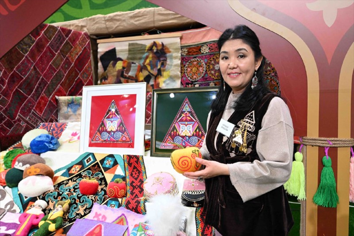 Geleneksel el sanatları sergilenen alanda, vatandaşlara Kazakistan'da Nevruz sofrasının vazgeçilmezi olan "Nevruz köje" ikram ediliyor.