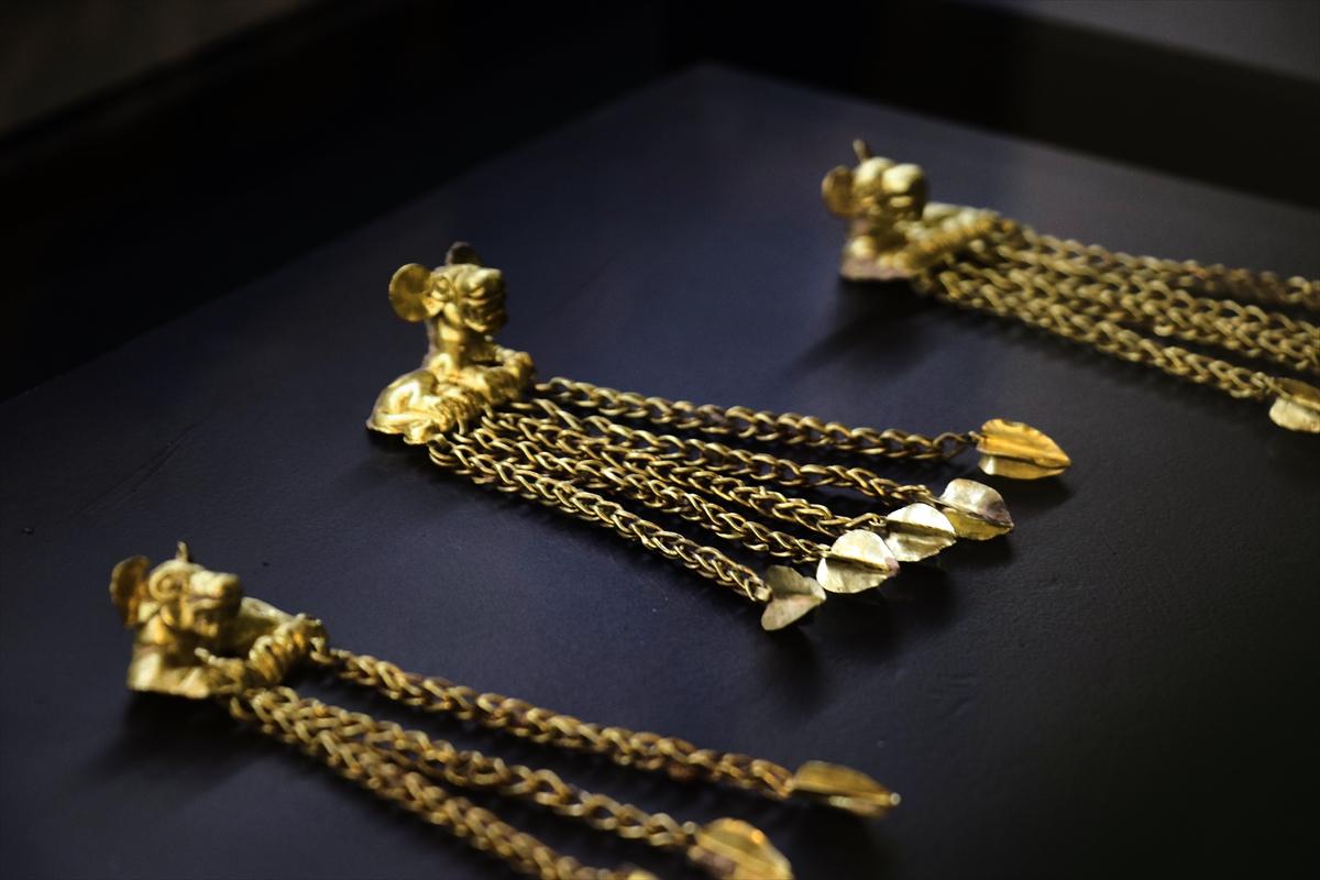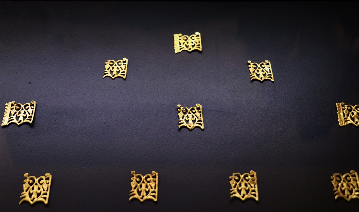 Yaklaşık 3 bin yıl önce Sakalar döneminde yaşayan zanaatkarlar tarafından altından yapılan eserler, tasarımları ve inci işlemeleriyle göz kamaştırıyor.