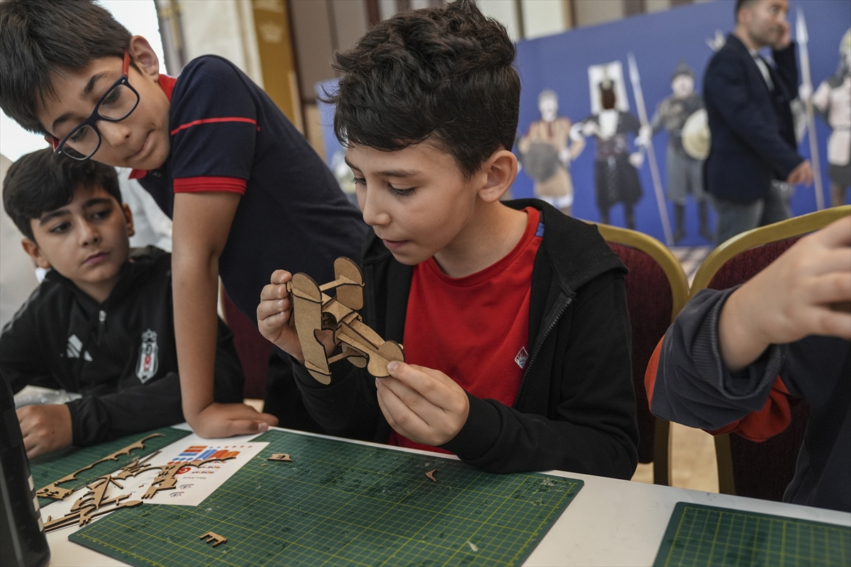 Çocuklar, Gençlik ve Spor Bakanlığınca hazırlanan alanda ok atma ve halat çekme gibi çeşitli yarışmalar yaptı.